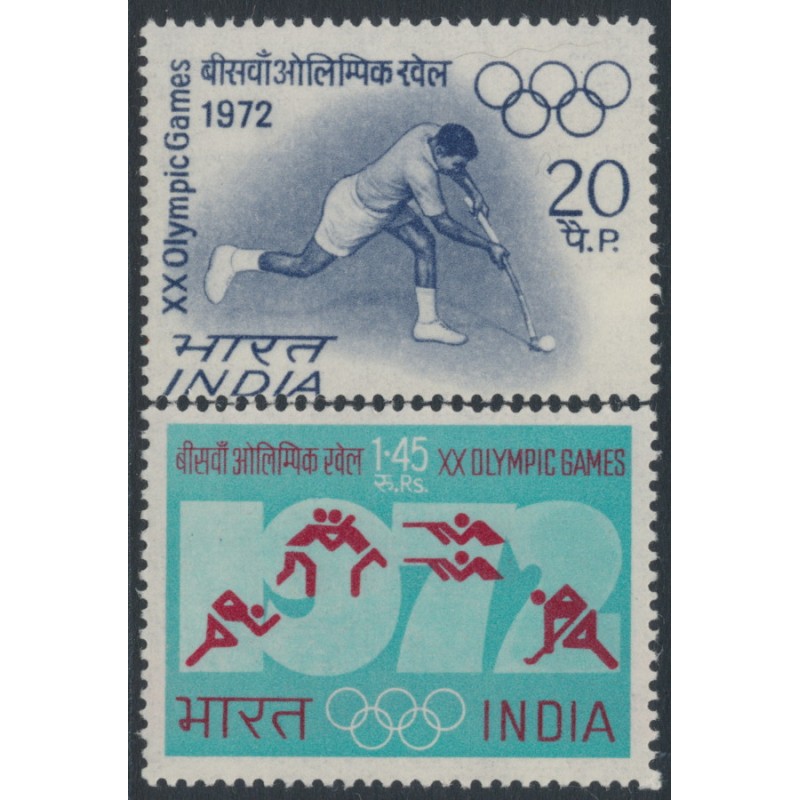 INDIA 1972 20p violet & 1.45Rp green/lake Olympic Games set of 2, mint never hinged – no thins, tears or bends. SG Cat. # 658-659