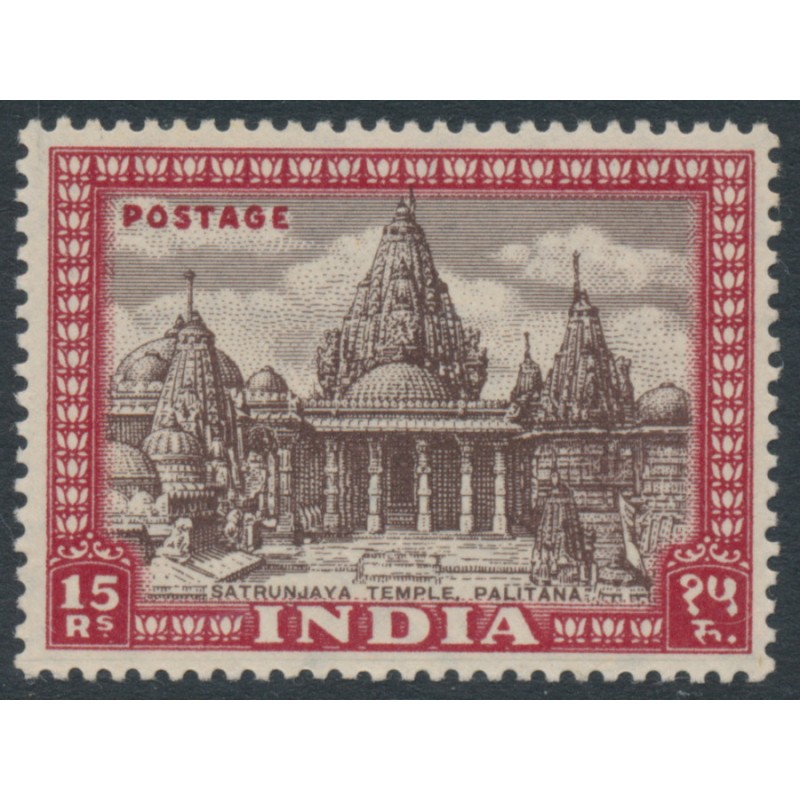 INDIA 1949 15R brown/claret Satrunjaya Temple, Palitana, mint never hinged – no thins, tears or bends. SG Cat. # 324