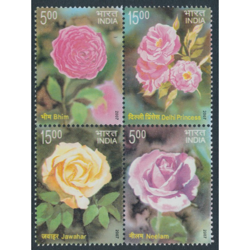 INDIA 2007 5Rp x 4 Roses se-tenant block of 4, mint never hinged – no thins, tears or bends. SG Cat. # 2378b