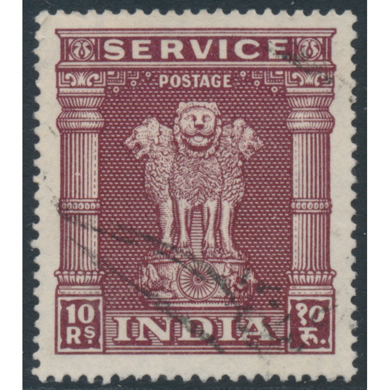 INDIA - 1950 10R reddish brown Ashokan Capital, stars watermark, used – SG # O164
