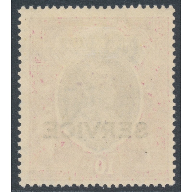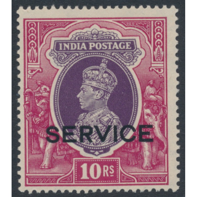 INDIA 1939 10Rp purple/claret King George VI Official, overprinted SERVICE, upright multiple stars watermark, mint hinged – no thins, tears or bends. SG Cat. # O138