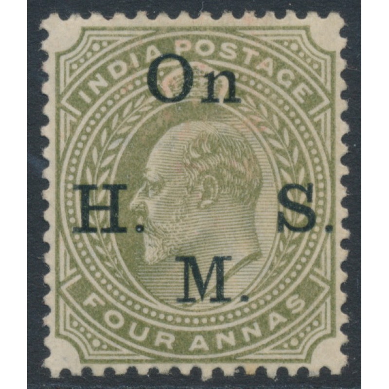 INDIA 1902 4a olive King Edward VII, overprinted On H.M.S. (SG type = O9), mint hinged – no thins, tears or bends. SG Cat. # O60