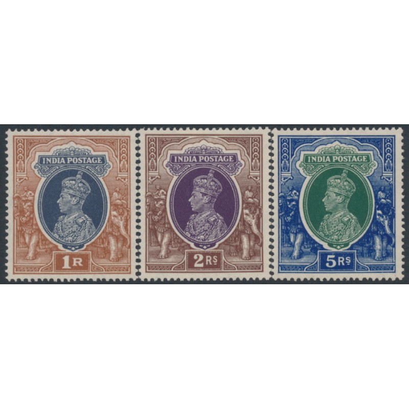 INDIA 1937 1Rp to 5Rp King George VI definitives, upright multiple stars watermark, mint hinged – no thins, tears or bends. SG Cat. # 259-261