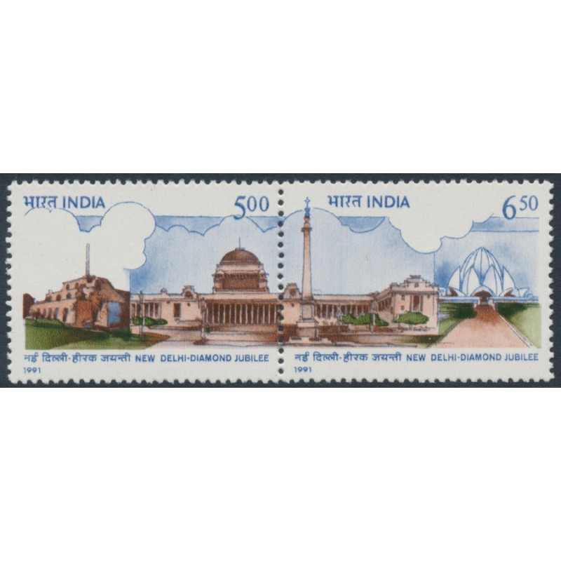 INDIA 1991 5R & 6.50R Anniversary of New Delhi se-tenant pair, mint never hinged – no thins, tears or bends. SG Cat. # 1456a