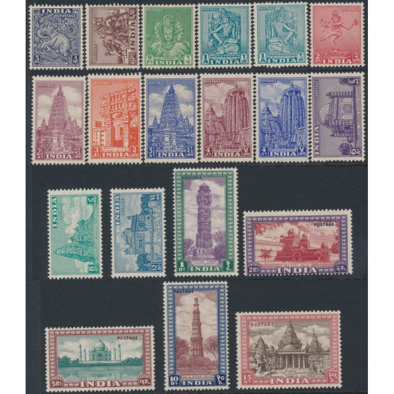 INDIA - 1949-1950 3p to 15Rp Definitives set of 19, MH – SG # 309-324+333-333c
