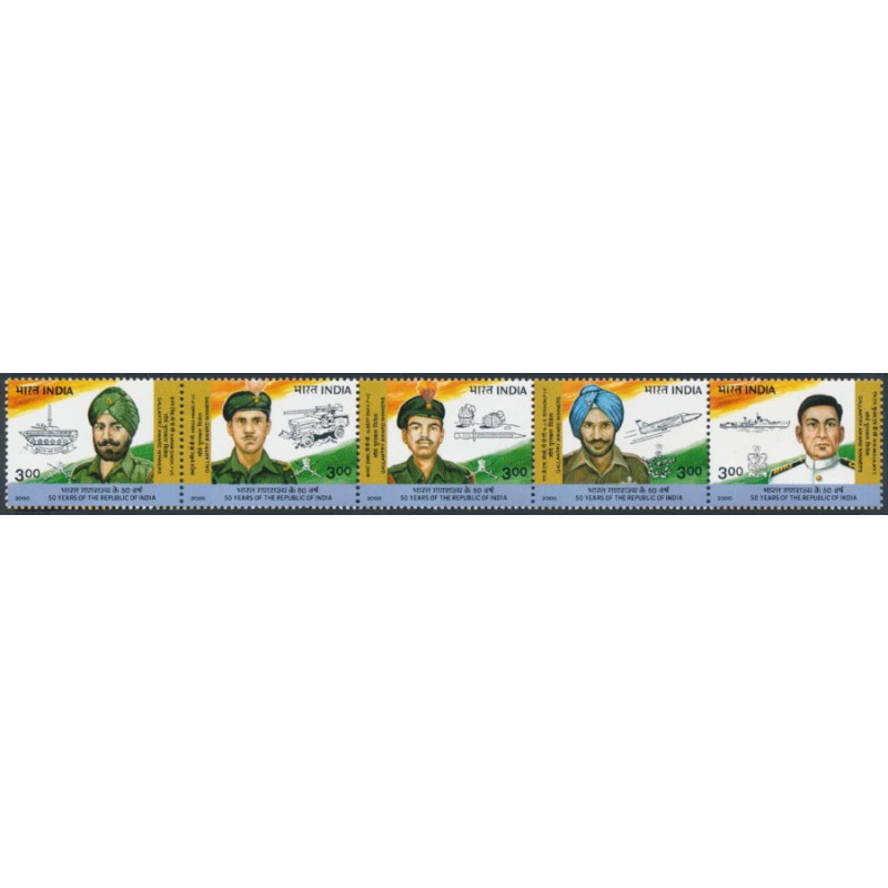 INDIA 2000 3Rp Gallantry Award Winners horizontal se-tenant strip of 5, mint never hinged – no thins, tears or bends. SG Cat. # 1899a