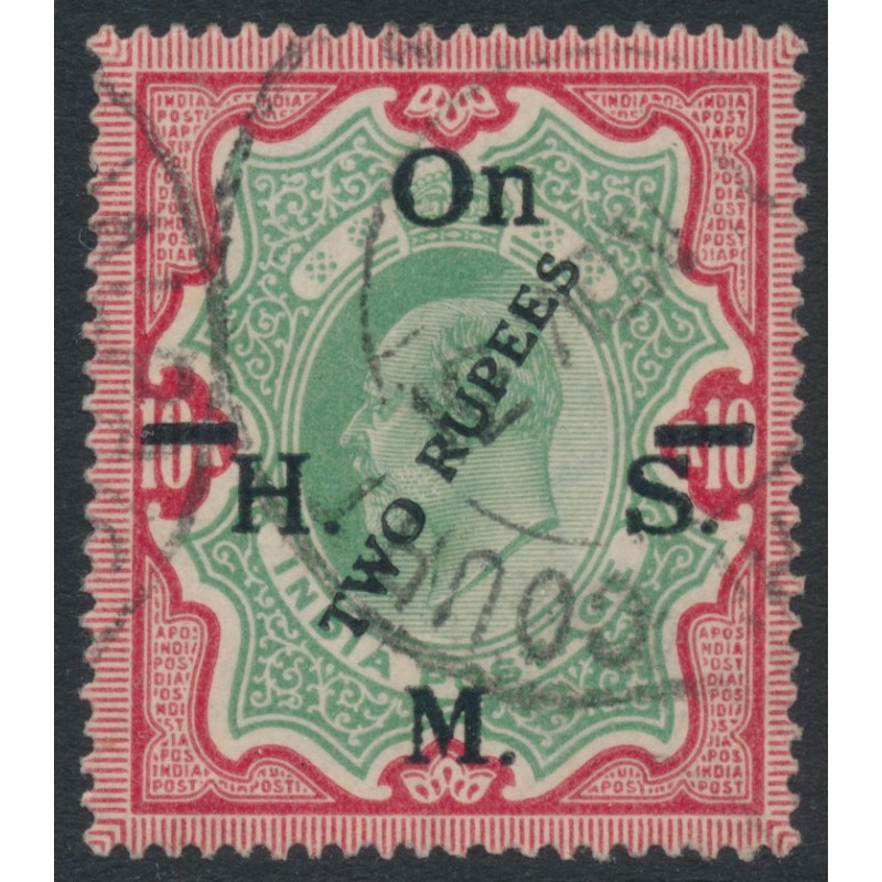 INDIA 1925 TWO RUPEES on 10R green/scarlet King Edward VII Official, used – no thins, tears or bends. SG Cat. # O101