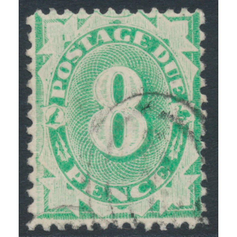 1904 8d emerald Postage Due, filled in base, perf. 12:11, inverted crown NSW watermark, used – no thins, tears or bends.