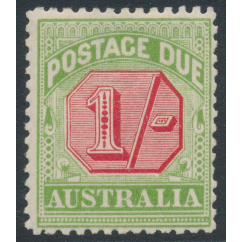 AUSTRALIA - 1909 1/- rose-red/green Postage Due, perf. 12:12½, crown A watermark, MH – SG # D69
