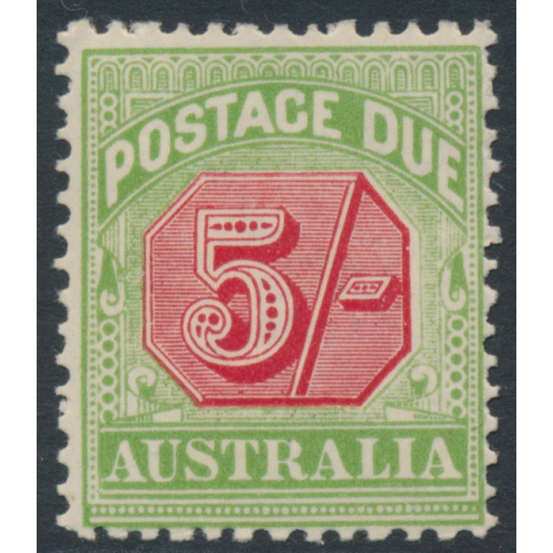 AUSTRALIA - 1909 5/- rose-red/green Postage Due, perf. 12:12½, crown A watermark, MH – SG # D71