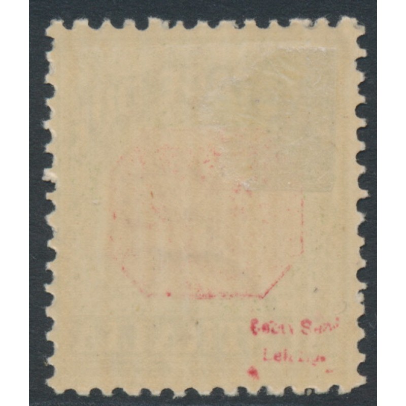 1909 5/- rose-red/green Postage Due, perf. 12:12½ with upright crown over double-lined A watermark, mint hinged – no thins, tears or bends.