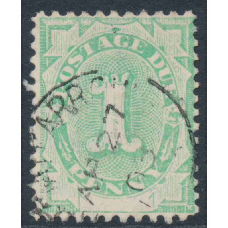 AUSTRALIA 1902 1d emerald Postage Due, blank base, perf. 11½:12 with upright crown NSW watermark, used – no thins, tears or bends. SG Cat. # D2w BW(ACSC) Cat. # D2a