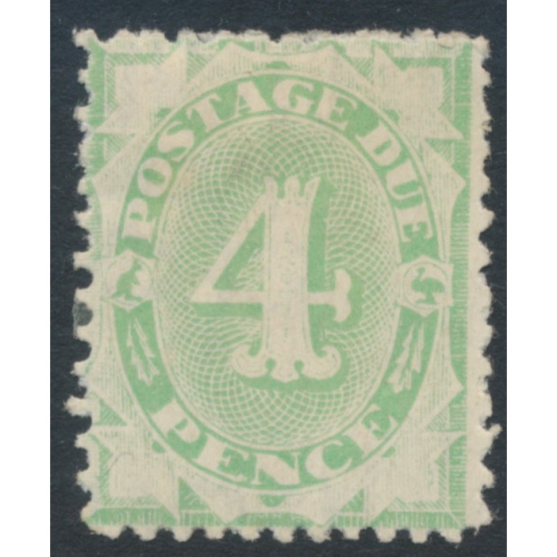 1903 4d emerald Postage Due, filled in base, perf. 12:11, inverted crown NSW watermark, mint hinged – no thins, tears or bends.