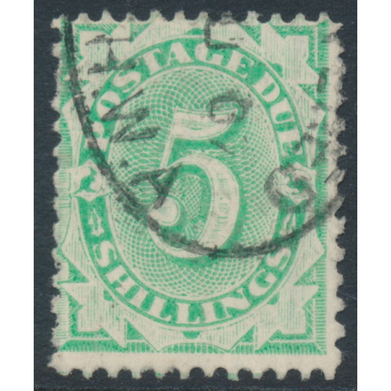1903 5/- emerald Postage Due, filled in base, perf. 12:11, inverted crown NSW watermark, used – no thins, tears or bends.