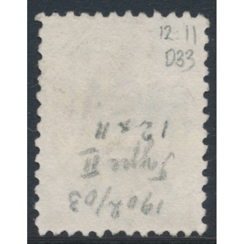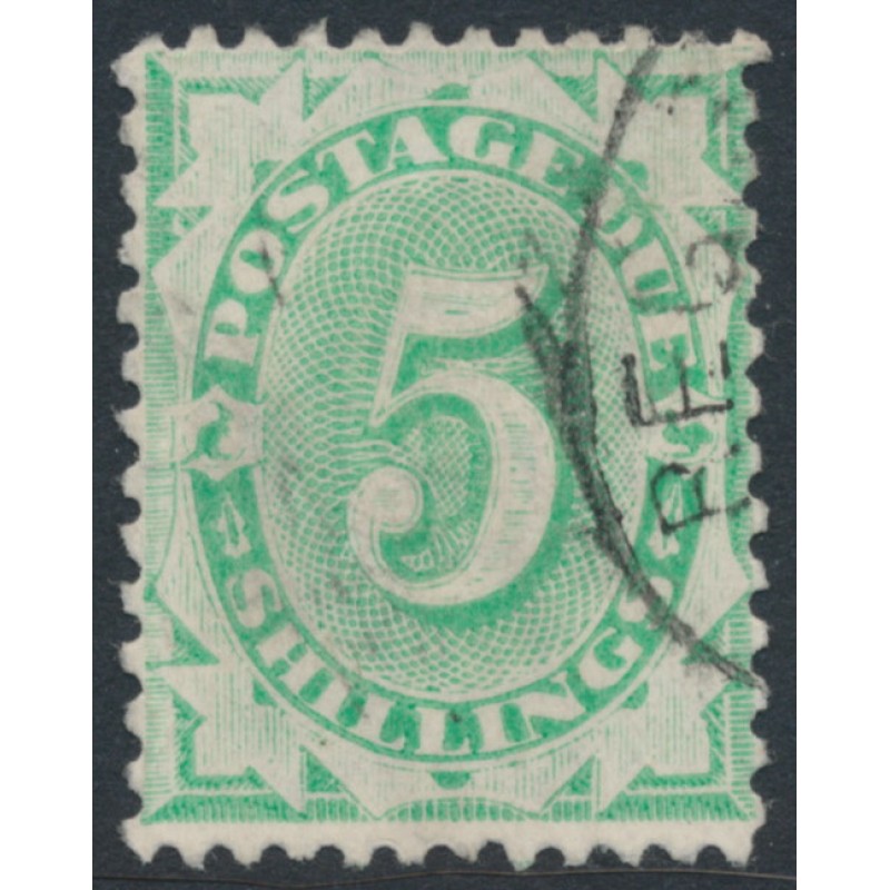 1903 5/- emerald Postage Due, completed base, perf. 12:11 with inverted crown NSW watermark, used – no thins, tears or bends.