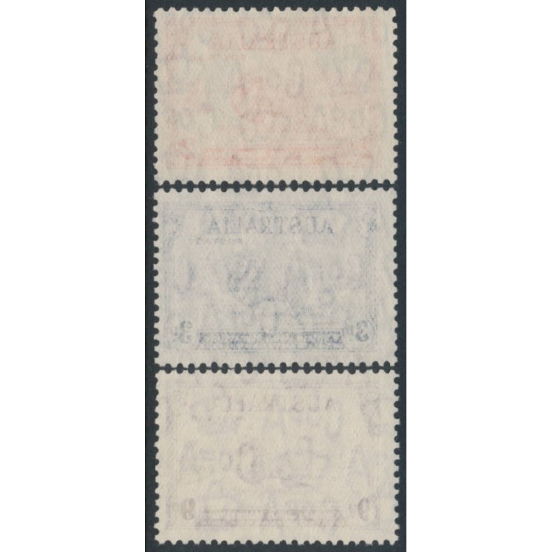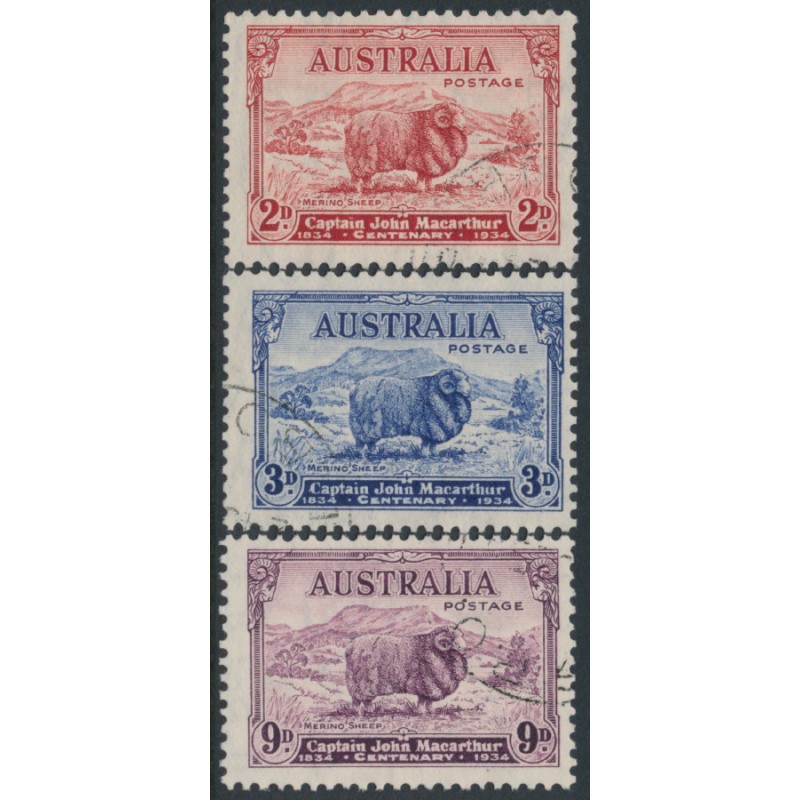 AUSTRALIA 1934 2d to 9d Macarthur set of 3, cancelled to order – without gum, no thins, tears or bends. BW(ACSC) Cat. # 157w + 159w + 160w SG Cat. # 150-152