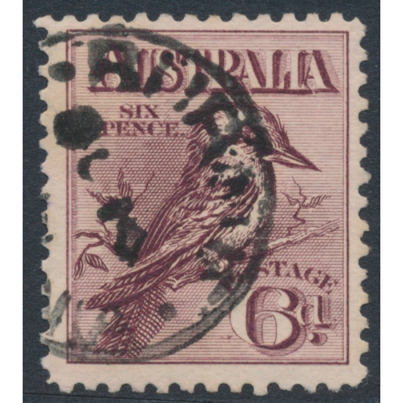 AUSTRALIA 1914 6d reddish maroon engraved Kookaburra, used – no thins, tears or bends. BW(ACSC) Cat. # 60B SG Cat. # 19