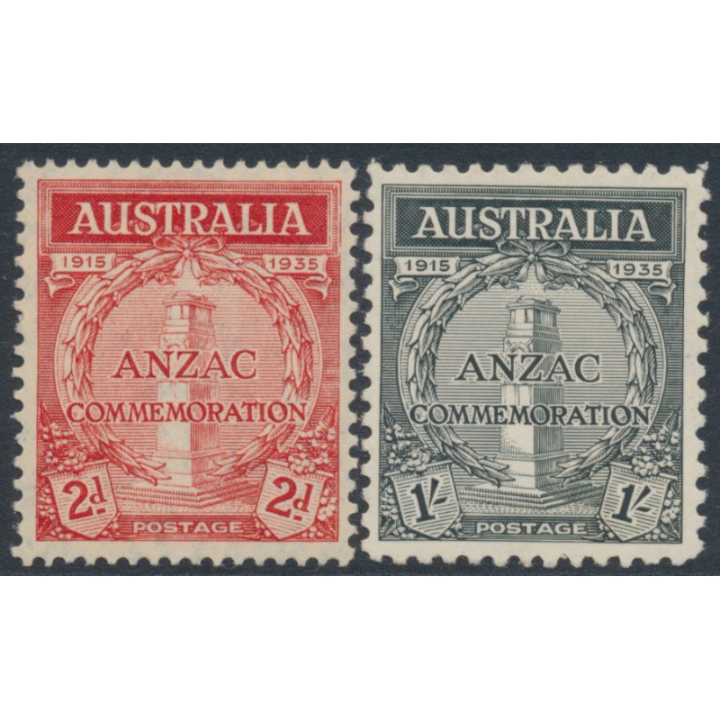 AUSTRALIA - 1935 2d red & 1/- black ANZAC Anniversary set of 2, MH – SG # 154-155