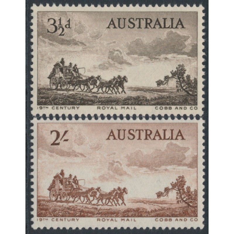 • AUSTRALIA - 1955 3½d & 2/- Cobb & Co set of 2, MNH – SG # 284-285