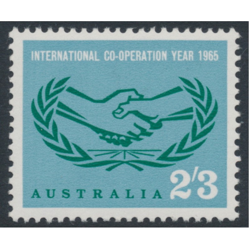 AUSTRALIA 1965 2/3 green/blue International Co-operation Year, mint never hinged – no thins, tears or bends. SG Cat. # 380