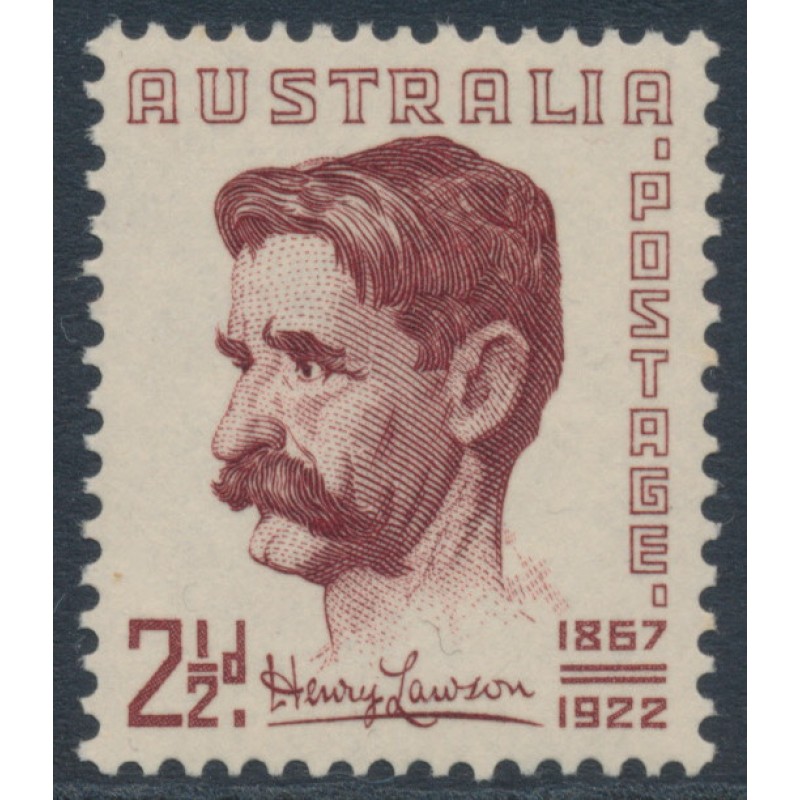 AUSTRALIA 1949 2½d maroon Henry Lawson, mint never hinged – no thins, tears or bends. SG Cat. # 231