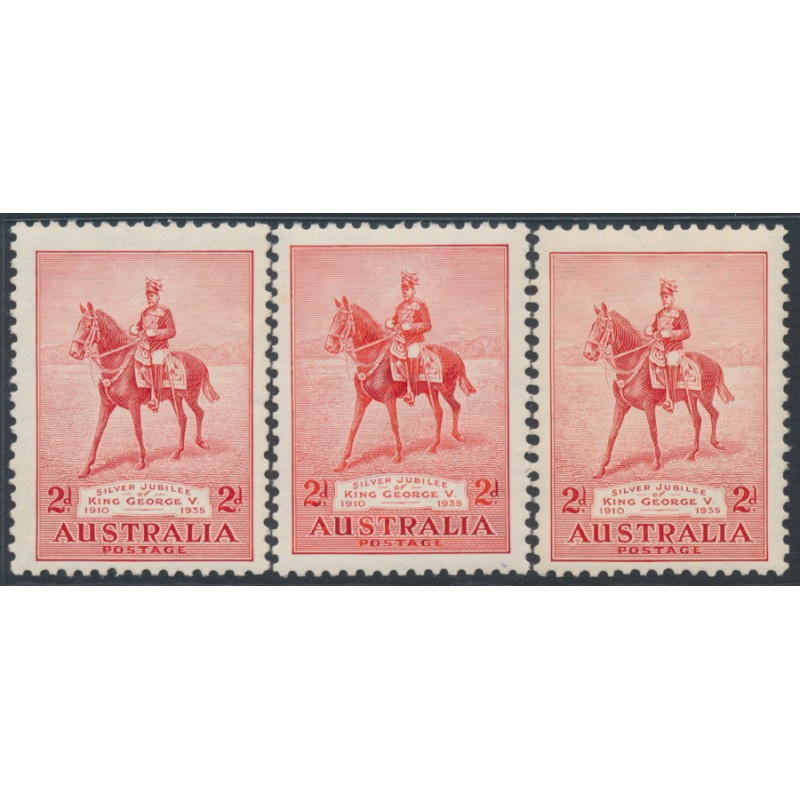 AUSTRALIA - 1935 2d KGV Jubilee three listed shades, MNH – ACSC # 166A+166B+166C