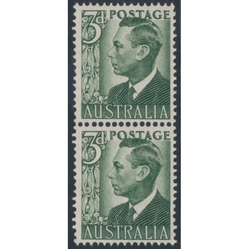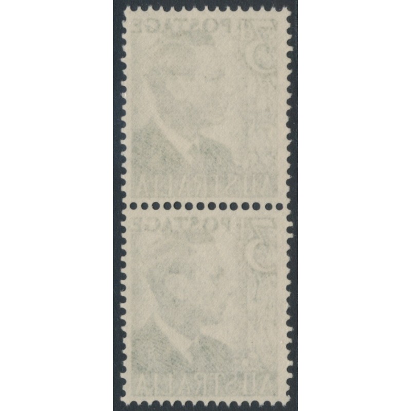 AUSTRALIA 1951 3d grey-green King George VI, vertical coil pair, mint never hinged – no thins, tears or bends. SG Cat. # 237da BW(ACSC) Cat. # 252bd
