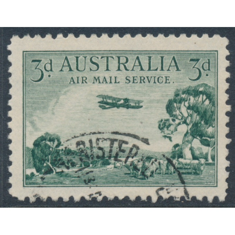 AUSTRALIA 1929 3d green Airmail (vertical mesh paper, picture measures 31mm x 22mm), used – no thins, tears or bends. BW(ACSC) Cat. # 134 SG Cat. # 115