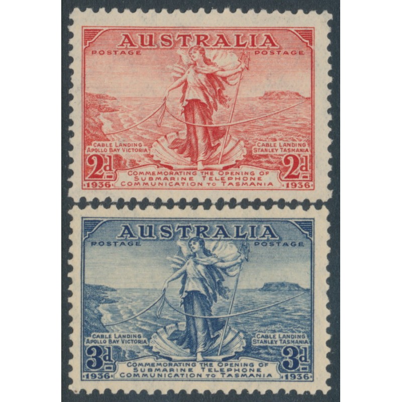 AUSTRALIA 1936 2d red & 3d blue Telephone Cable set of 2, mint never hinged – no thins, tears or bends. SG Cat. # 159-160 BW(ACSC) Cat. # 169-170