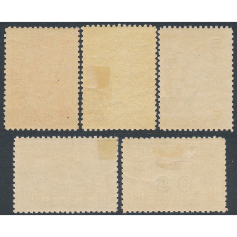 1931 2d to 6d Kingsford Smith Airmail set of 5 (includes both 6d shades and the 6d brown overprinted OS), mint hinged – no thins, tears or bends.