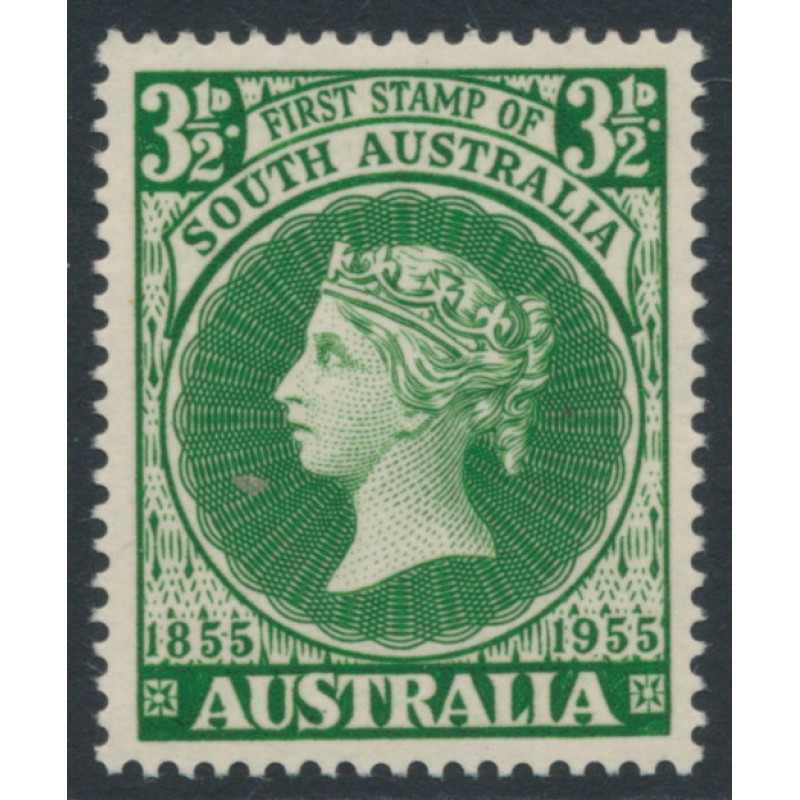 AUSTRALIA 1955 3½d green South Australian Stamp Anniversary, mint never hinged – no thins, tears or bends. SG Cat. # 288