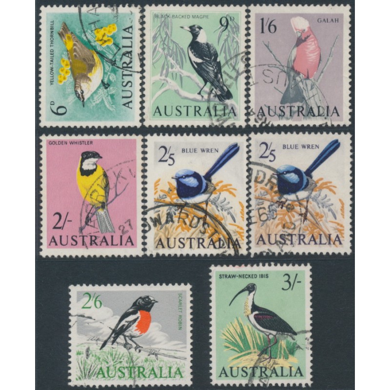 AUSTRALIA - 1964-1965 6d to 3/- Native Birds set of 8, used – SG # 363-369 + 367a