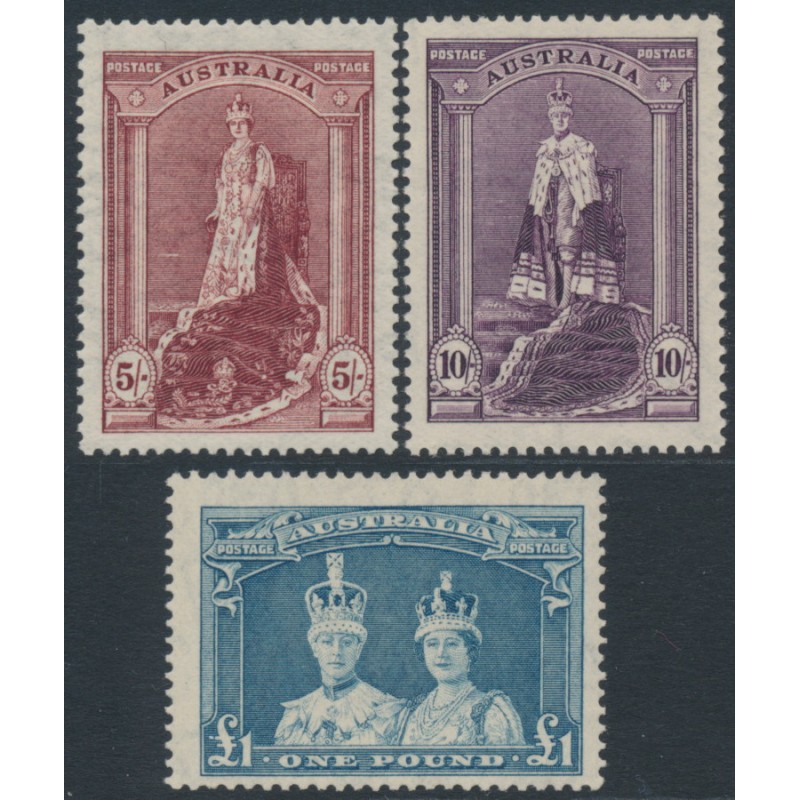 AUSTRALIA 1948-1949 5/- to £1 Robes set of 3 on thin paper, mint hinged – no thins, tears or bends. BW(ACSC) Cat. # 213, 215, 217 SG Cat. # 176a-178a
