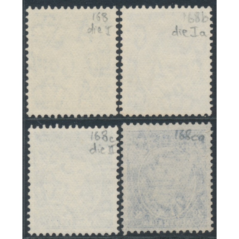 AUSTRALIA 1937 3d blue King George V definitive, perf. 13½:14, die I, die Ia & die II (on thick & thin papers), used – no thins, tears or bends. SG Cat. # 168 + 168b + 168c + 168ca