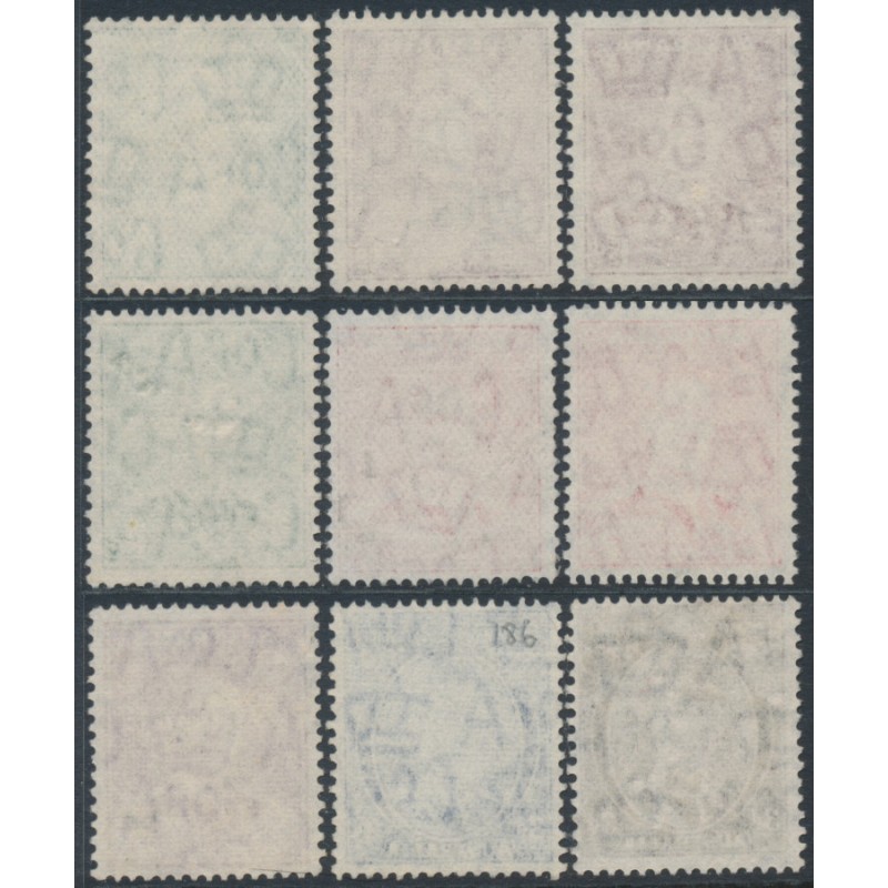 1938-1941 1d to 3d King George VI definitives set of 8, perf. 15:14, plus the 2d red KGVI with inverted watermark, used – no thins, tears or bends.
