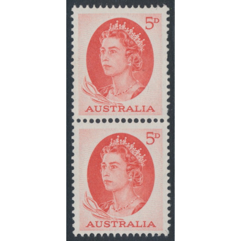 AUSTRALIA - 1965 5d red QEII, coil pair, MNH – SG # 354ca