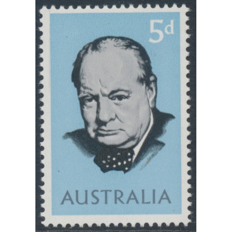 AUSTRALIA 1965 5d blue/black/grey Churchill Commemoration, mint never hinged – no thins, tears or bends. SG Cat. # 377