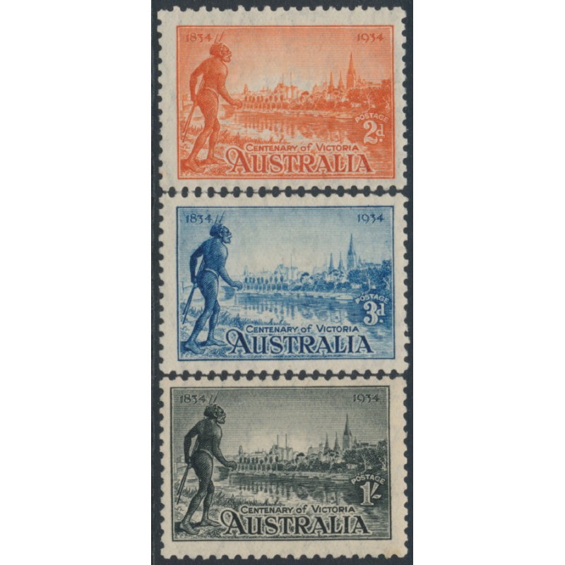 AUSTRALIA - 1934 2d to 1/- Centenary of Victoria set of 3 perf. 10½, MH – SG # 147-149