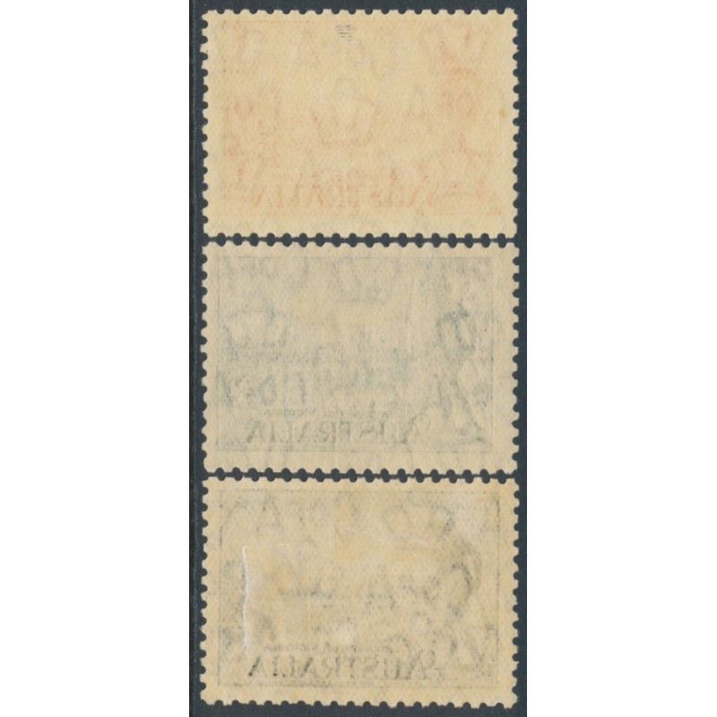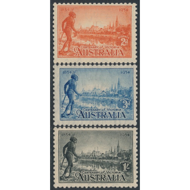 AUSTRALIA 1934 2d to 1/- Centenary of Victoria, perf. 10½ set of 3, mint hinged – no thins, tears or bends. BW(ACSC) Cat. # 151-153 SG Cat. # 147-149