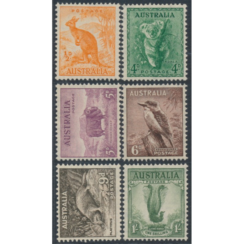 AUSTRALIA - 1942 ½d to 1/- Animals set of 6, perf. 15:14, MNH – SG # 179 + 188-192