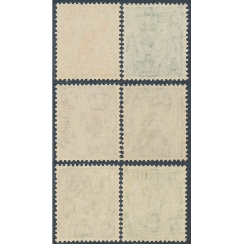 1942-1945 ½d to 1/- Animals definitives set of 6, perf. 15:14, CofA watermark, mint never hinged – no thins, tears or bends.