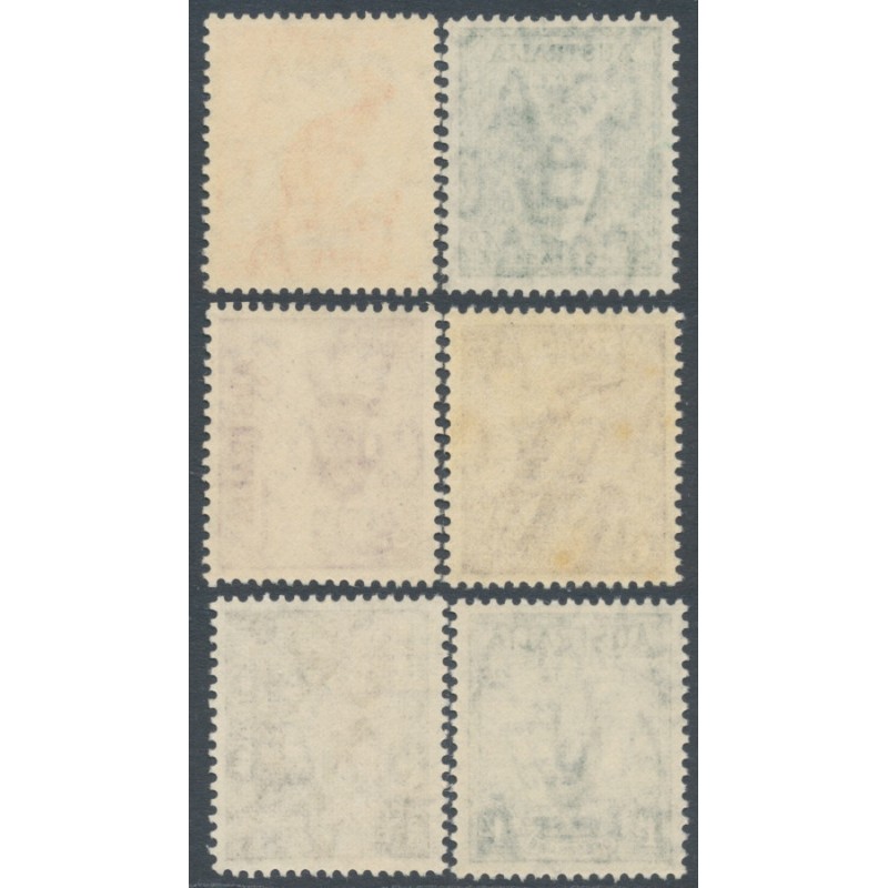 AUSTRALIA 1942-1945 ½d to 1/- Animals definitives set of 6, perf. 15:14, CofA watermark, mint never hinged – no thins, tears or bends. SG Cat. # 179 + 188-192