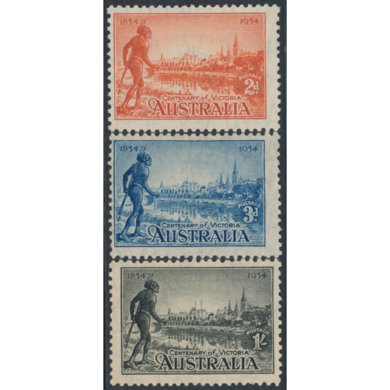 AUSTRALIA - 1934 2d to 1/- Centenary of Victoria set of 3 perf. 11½, MH – SG # 147a-149a