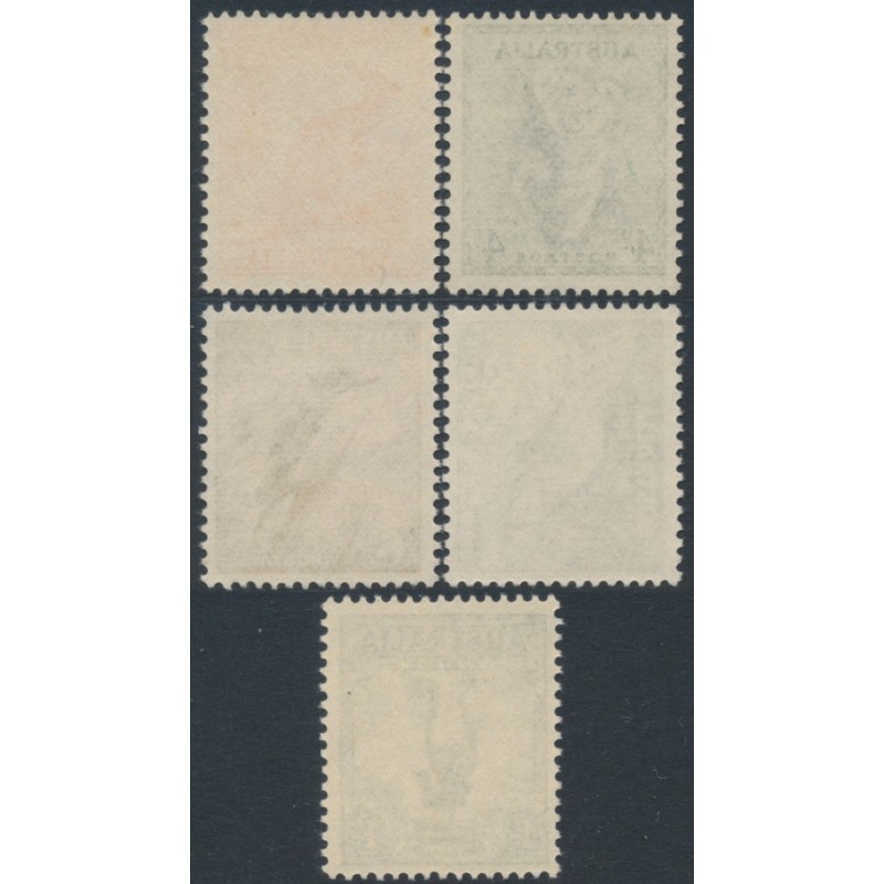 AUSTRALIA - 1949 ½d to 1/- Animals set of 5, no watermark – SG # 228 + 230a-230d