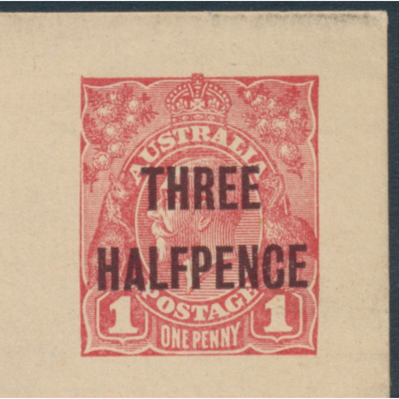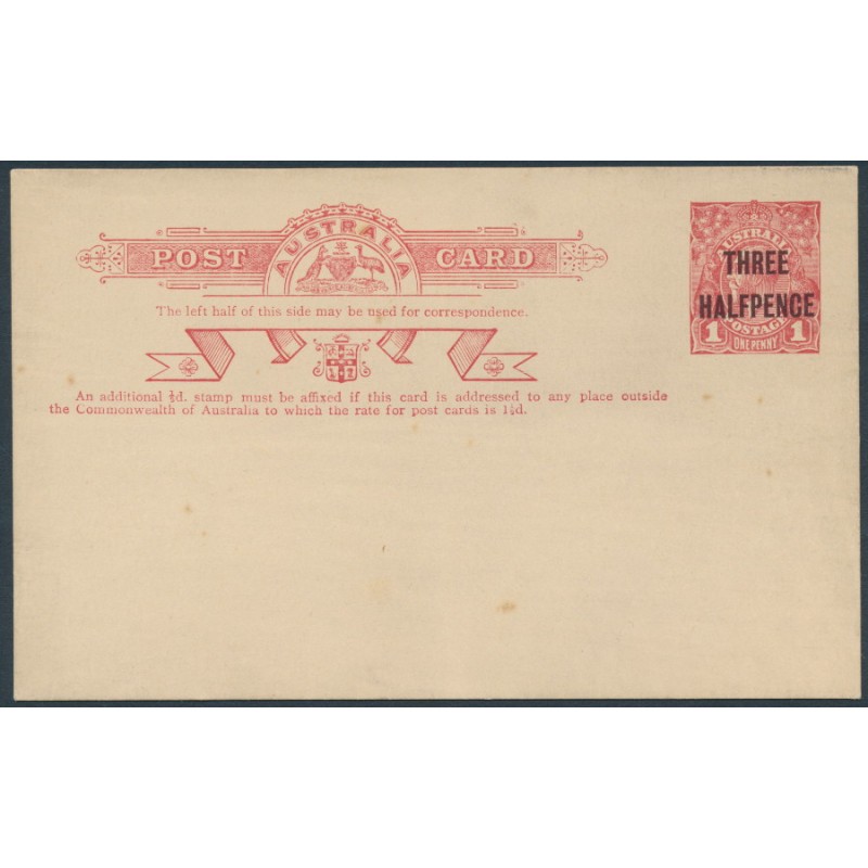AUSTRALIA - 1918 THREE HALFPENCE on 1d red KGV postcard, unused – ACSC # P50