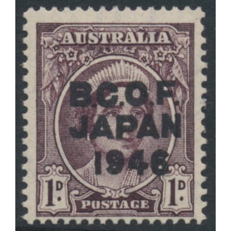 1946 1d purple-brown Queen Elizabeth overprinted B.C.O.F. JAPAN 1946, mint never hinged – no thins, tears or bends.