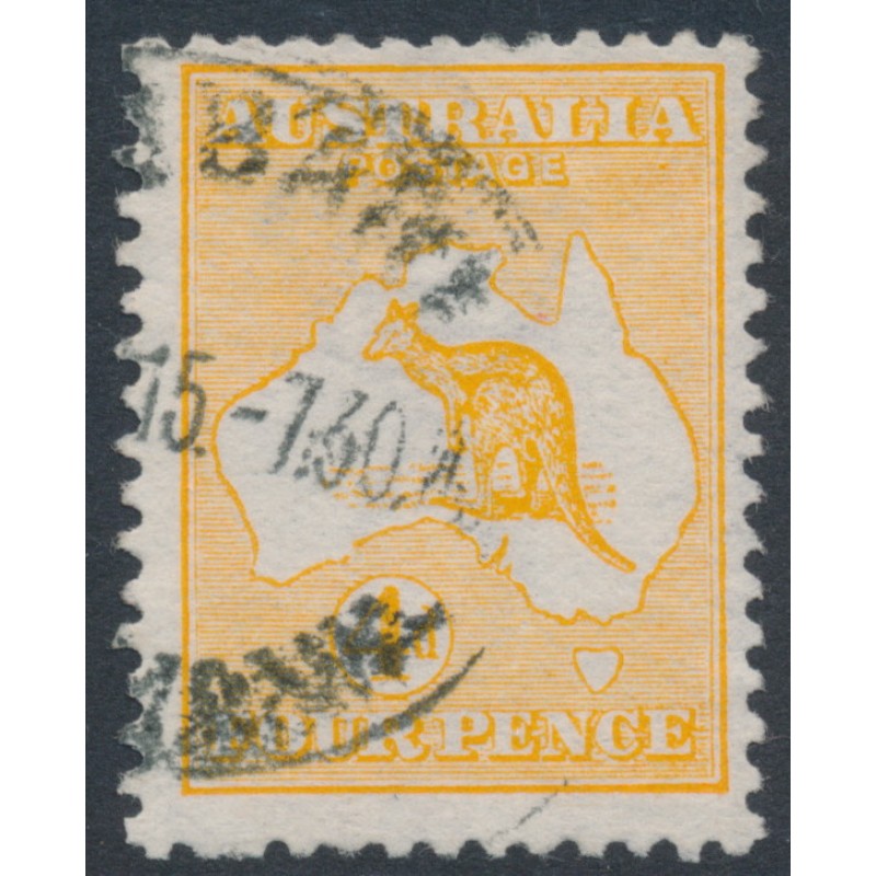 AUSTRALIA 1913 4d orange Kangaroo, 1st watermark, used – no thins, tears or bends. BW(ACSC) Cat. # 15A SG Cat. # 6