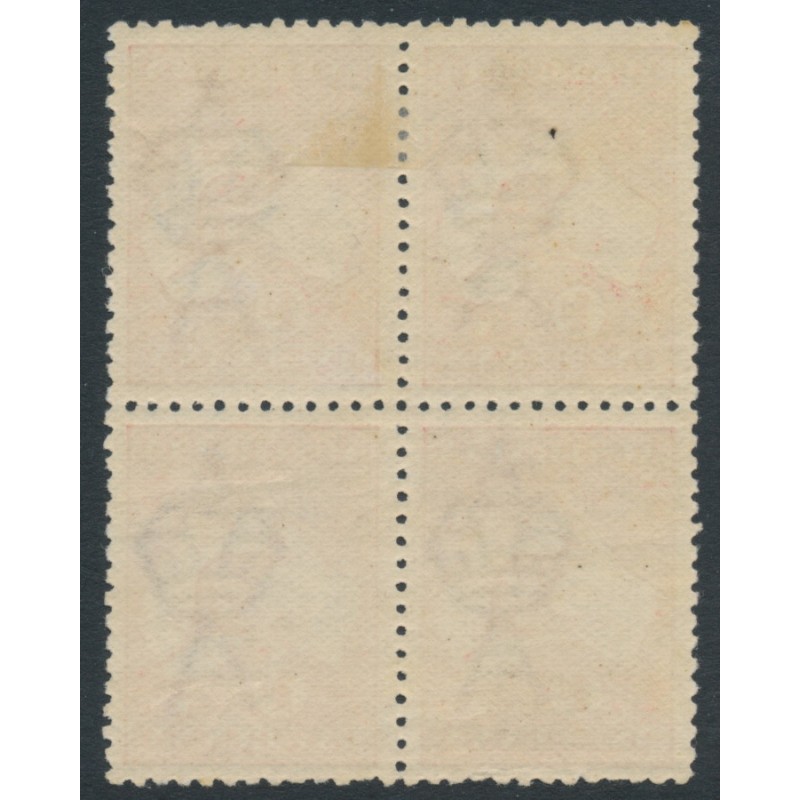 1914 1d red Kangaroo, die IIA, 1st watermark, block of 4, mint hinged – the lower two stamps are mint never hinged, no thins, tears or bends.