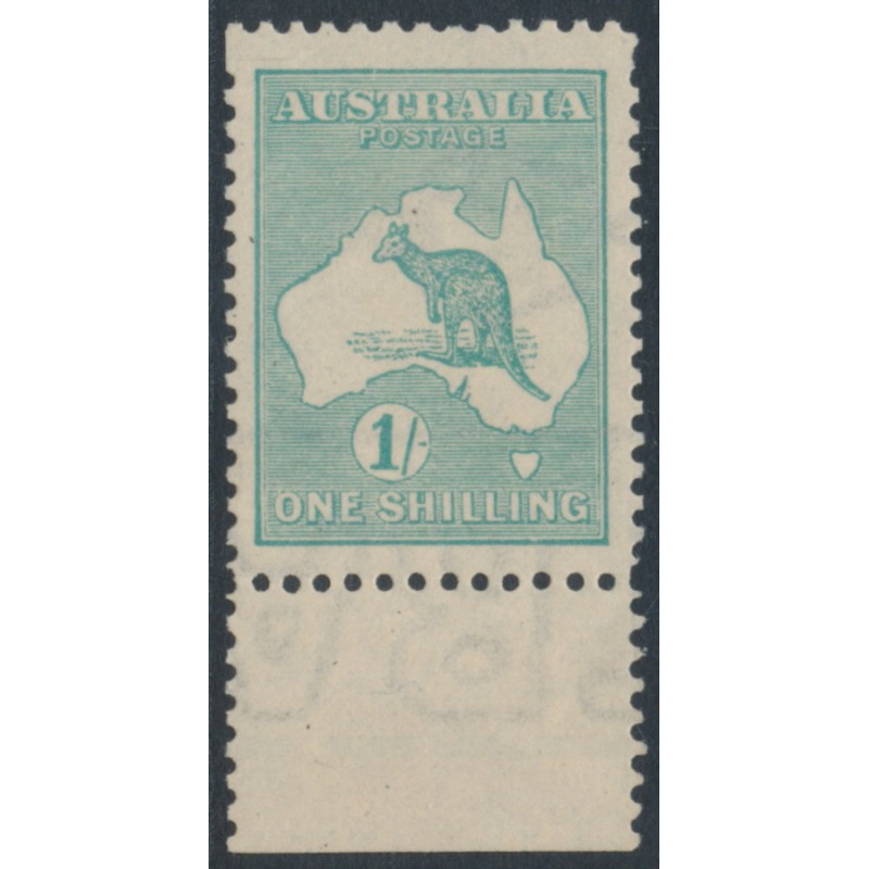 AUSTRALIA 1927 1/- blue-green Kangaroo, die IIB, sideways 3rd watermark, mint hinged – no thins, tears or bends. BW(ACSC) Cat. # 33Aaa SG Cat. # 40ba