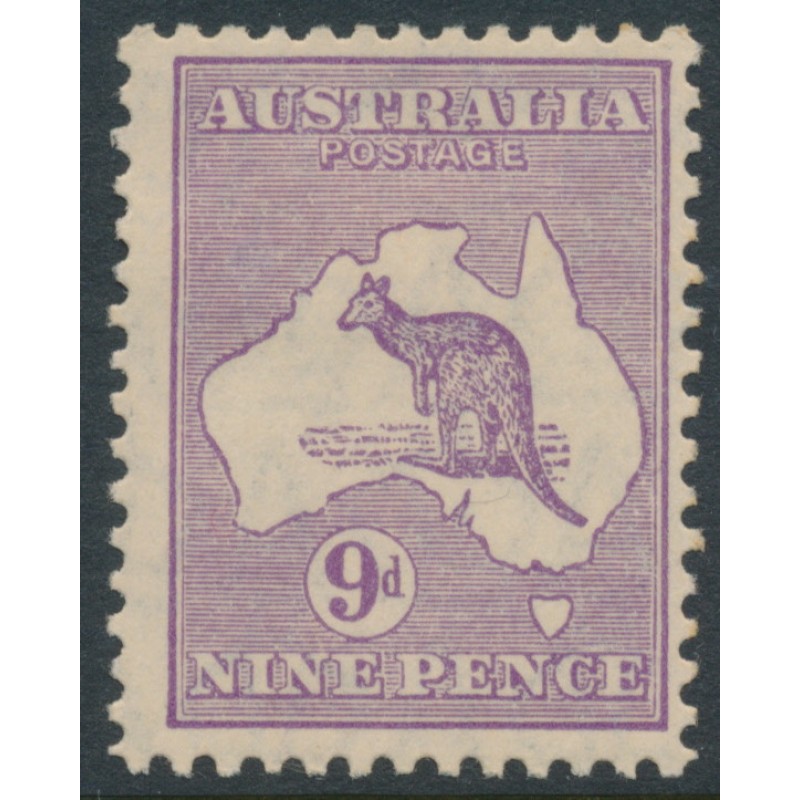 AUSTRALIA 1929 9d violet Kangaroo, small multiple watermark, mint hinged – no thins, tears or bends. BW(ACSC) Cat. # 28A SG Cat. # 108